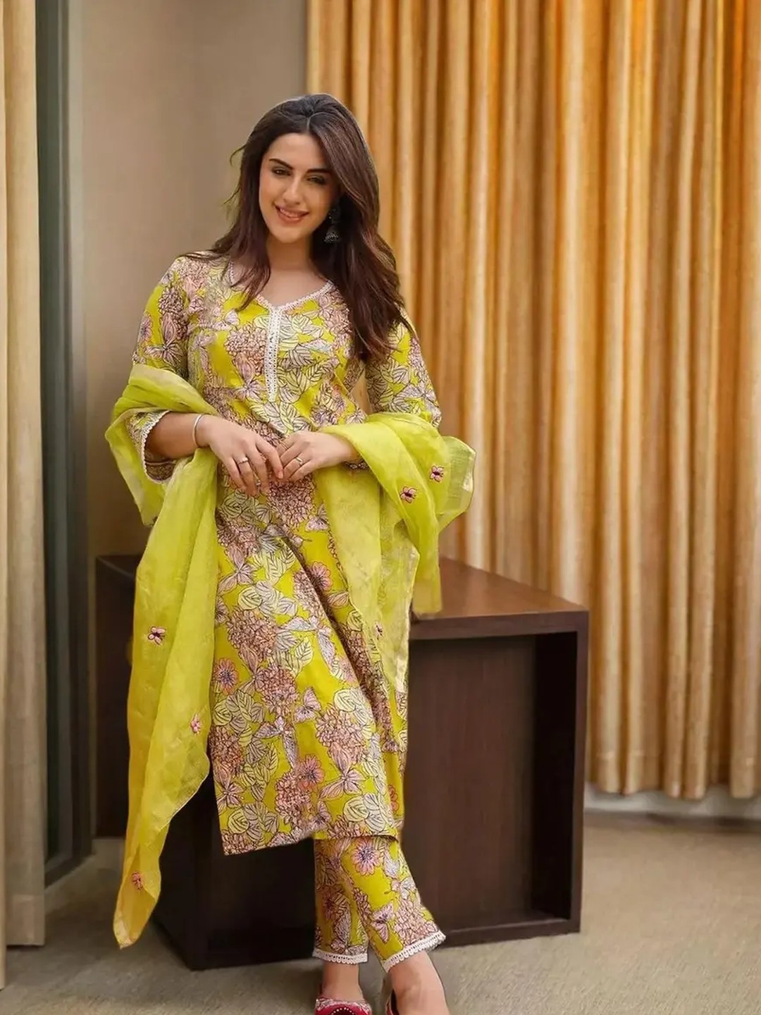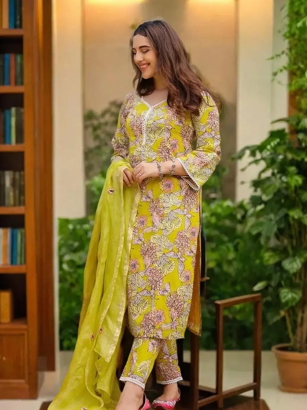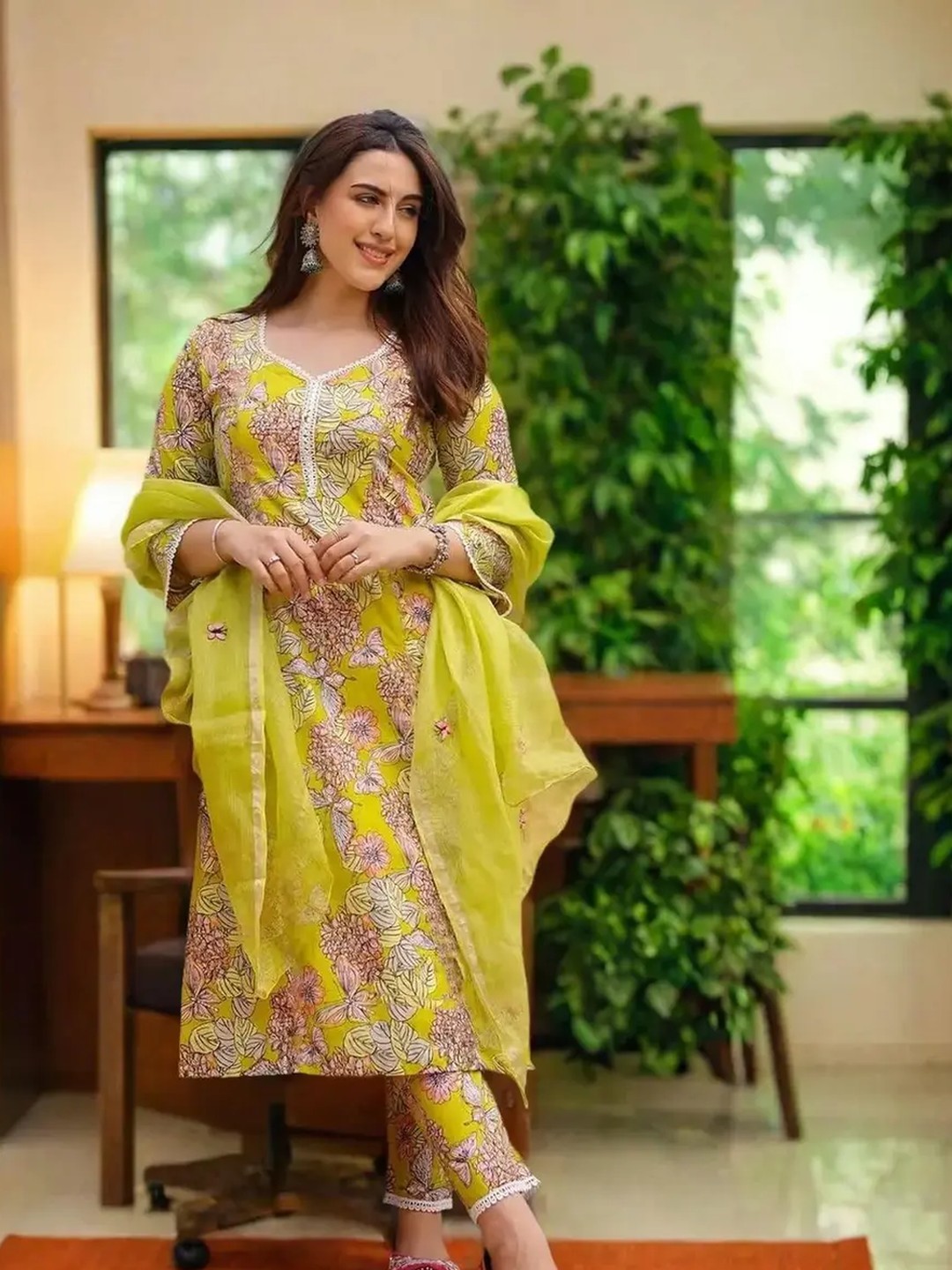Product Name: Shri Ram Yellow Ethnic Printed Kurta Set for Women