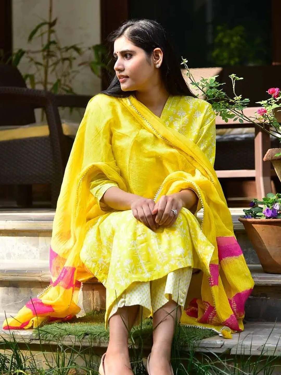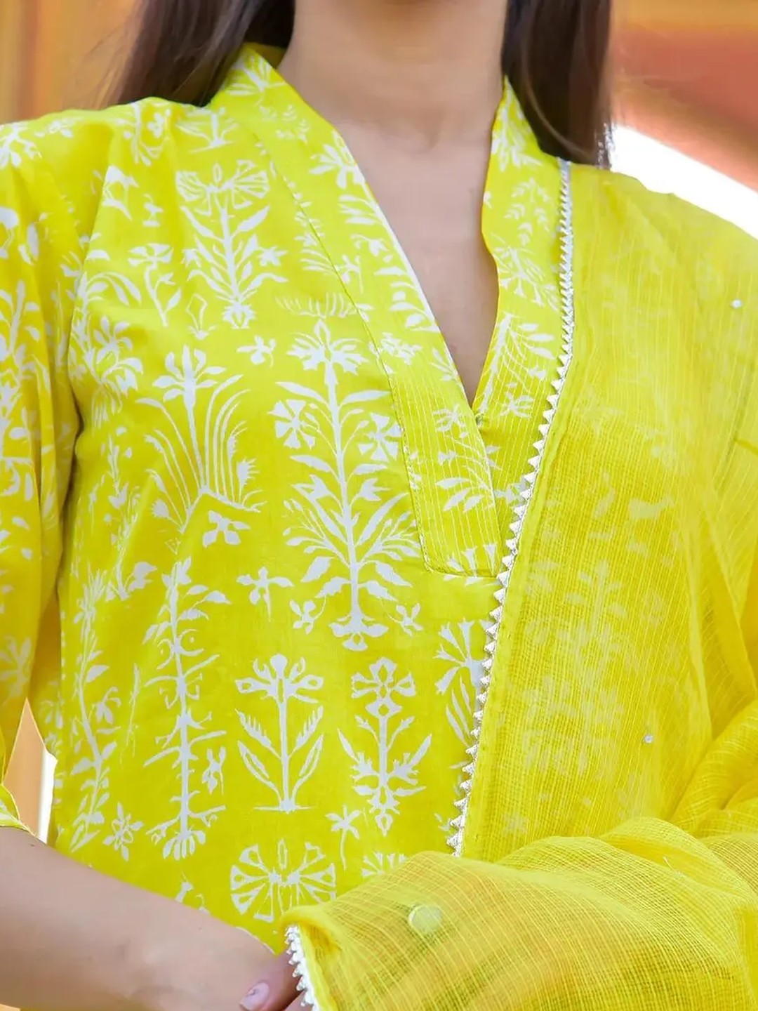 Product Name: Shri Ram Yellow Printed Straight Kurta Set for Women