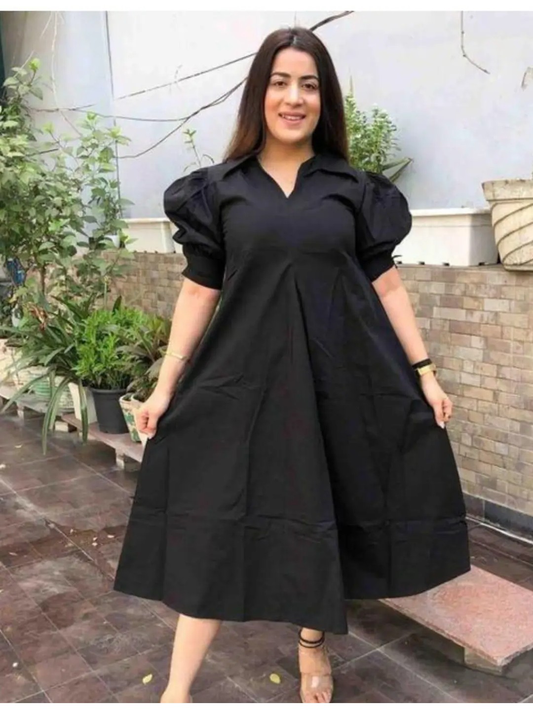 Product Name: Solid A-line Poplin Midi Dress for Women