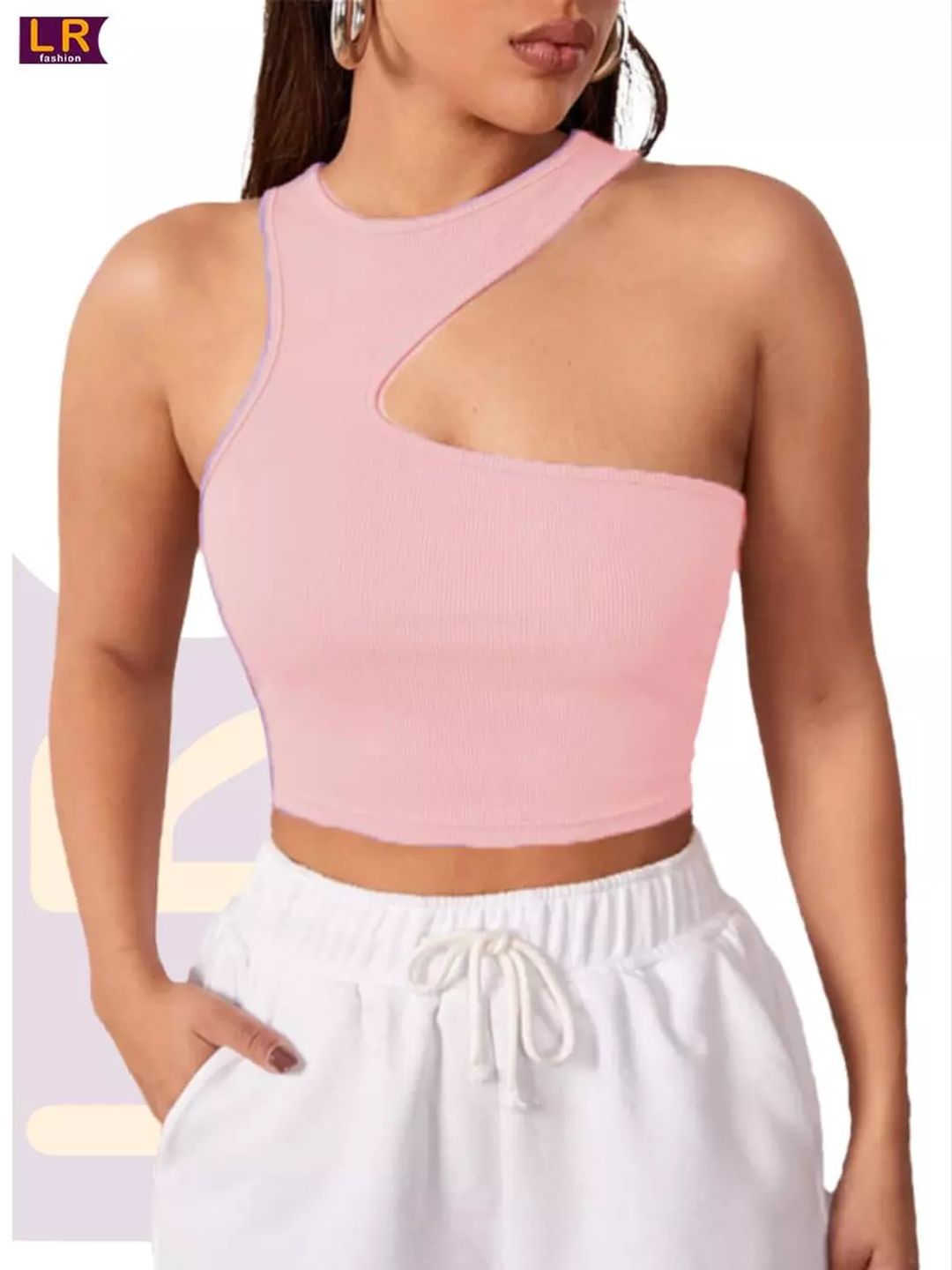 Product Type: Solid Asymmetric Neck Front Cut out Crop Top for Women