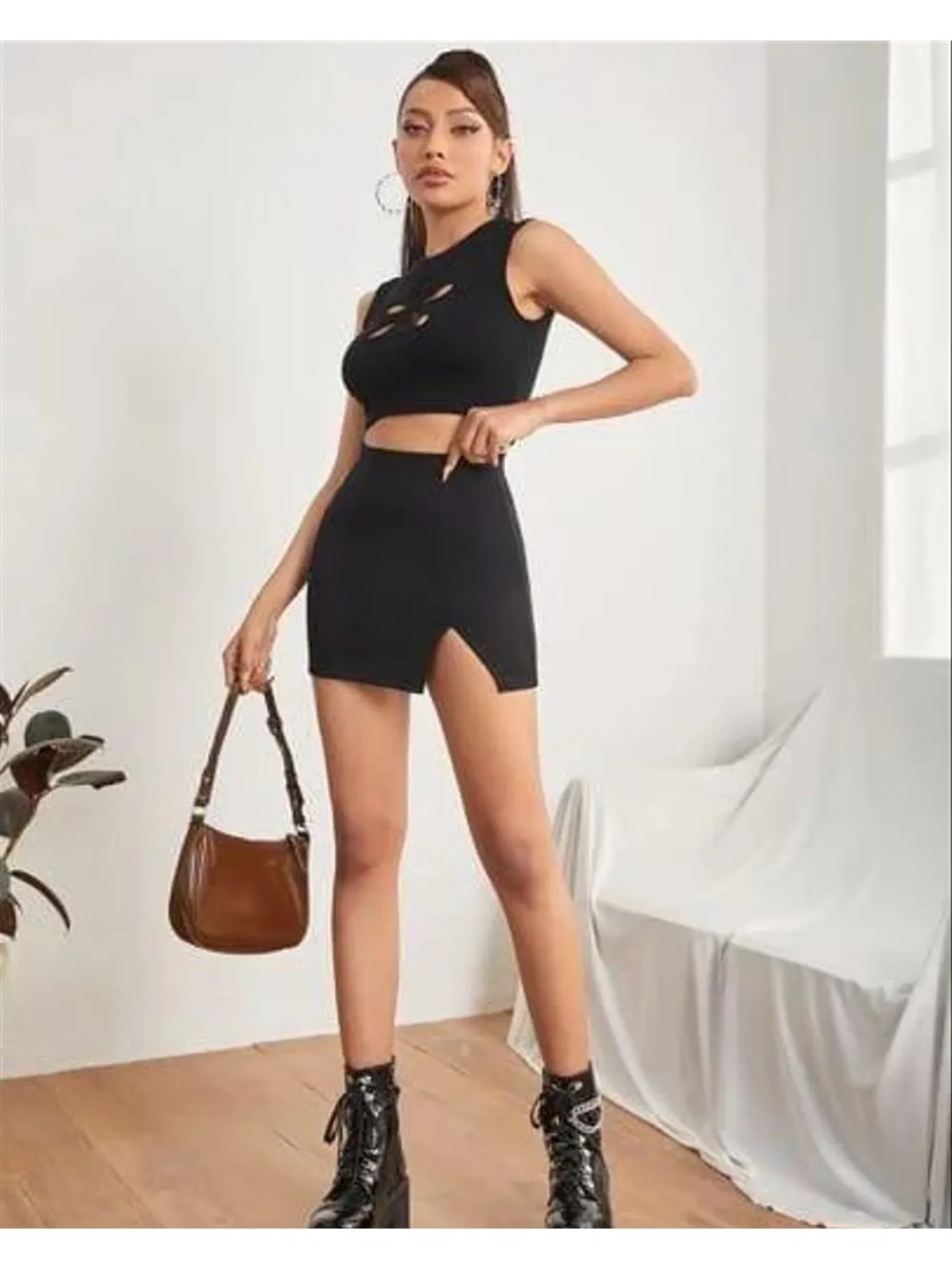 Product Name: Solid Bodycon Mini Slit Skirt for Women