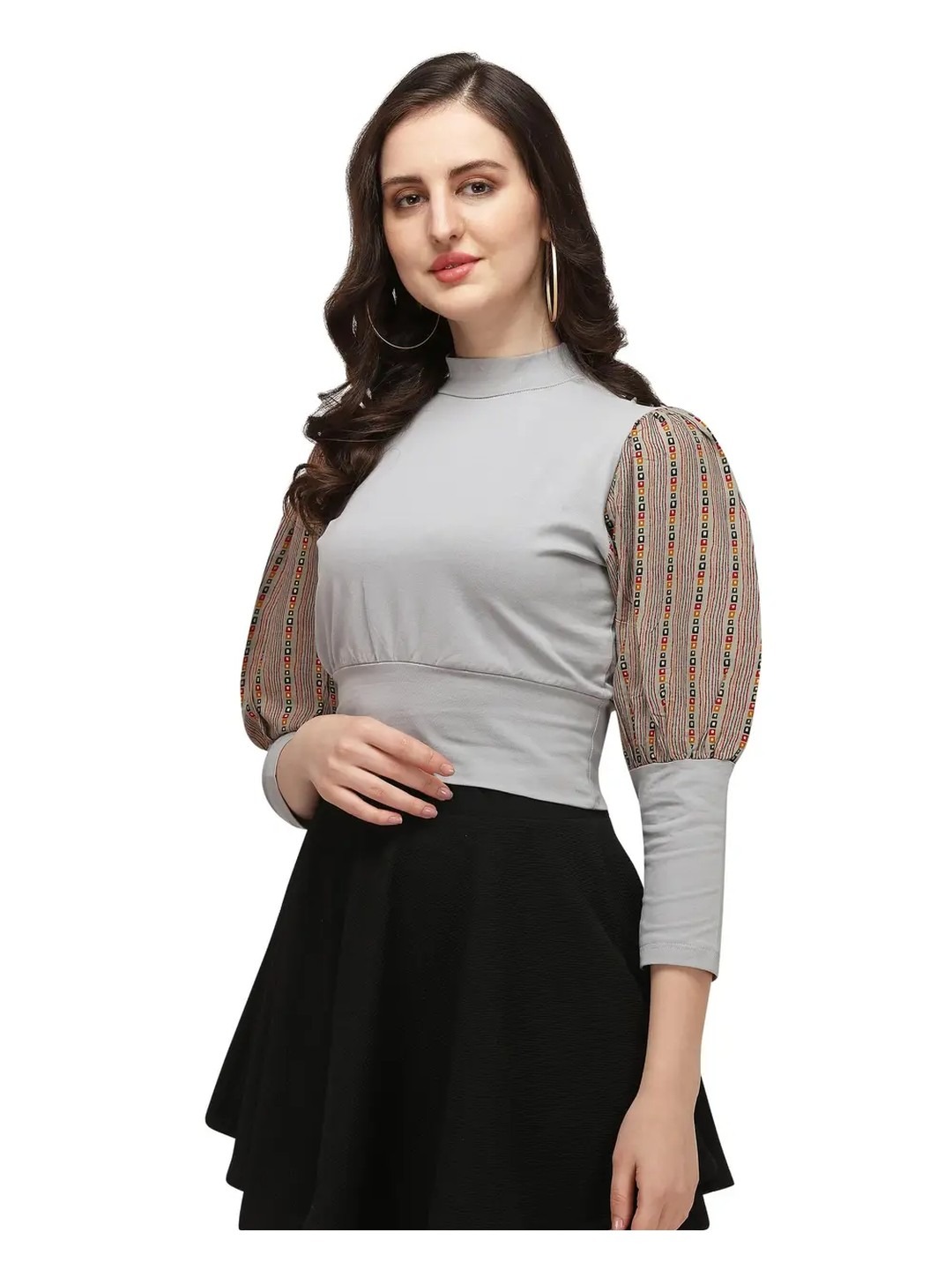Solid High Neck Crop Top for Women that has a high neck, cropped length, long bishop sleeves and a bodycon fit. This rayon high-neck crop top can be styled with versatile options and accessorized with minimal jewellery for a graceful charm.
