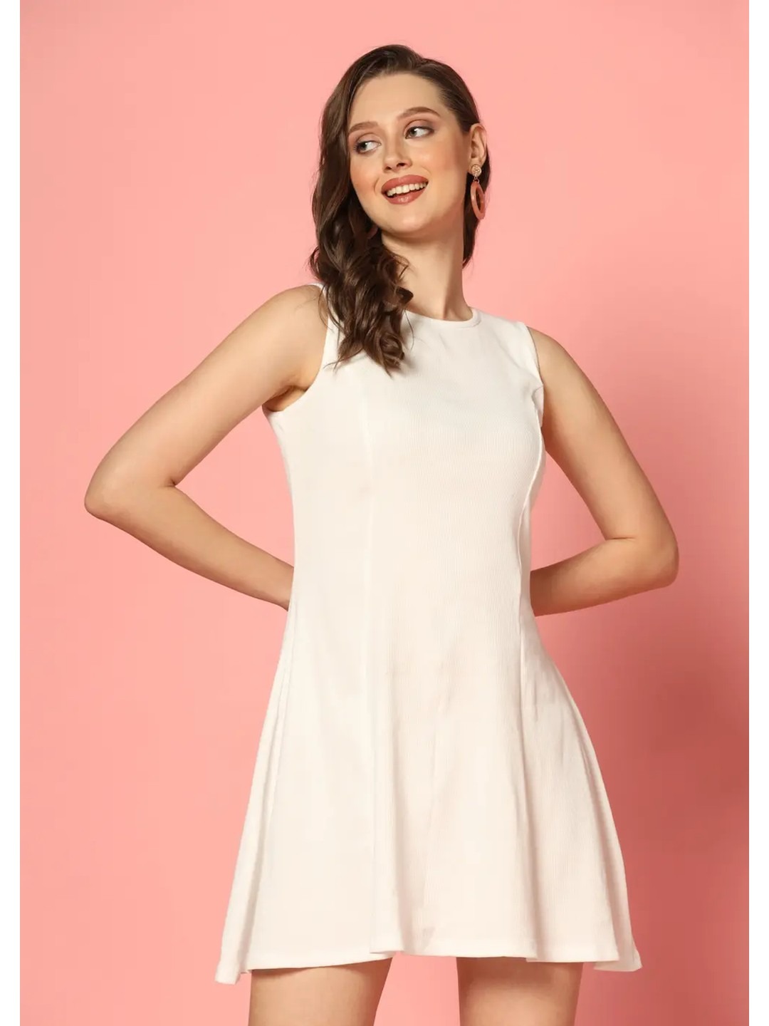 Solid Mini Skater Dress for Women that has a sleeveles cut, round neck and a mini length. This mini skater dress gives you the perfect definition and an elegant and feminine look; ideal for special casual occasions.