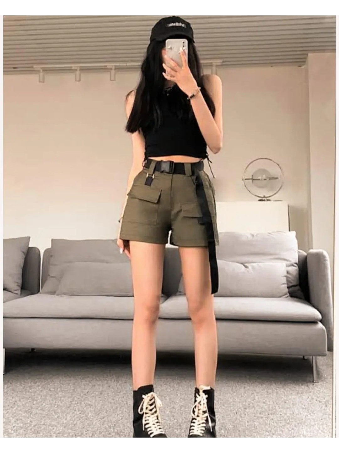 Product Name: Solid Olive Green Cargo Shorts for Women