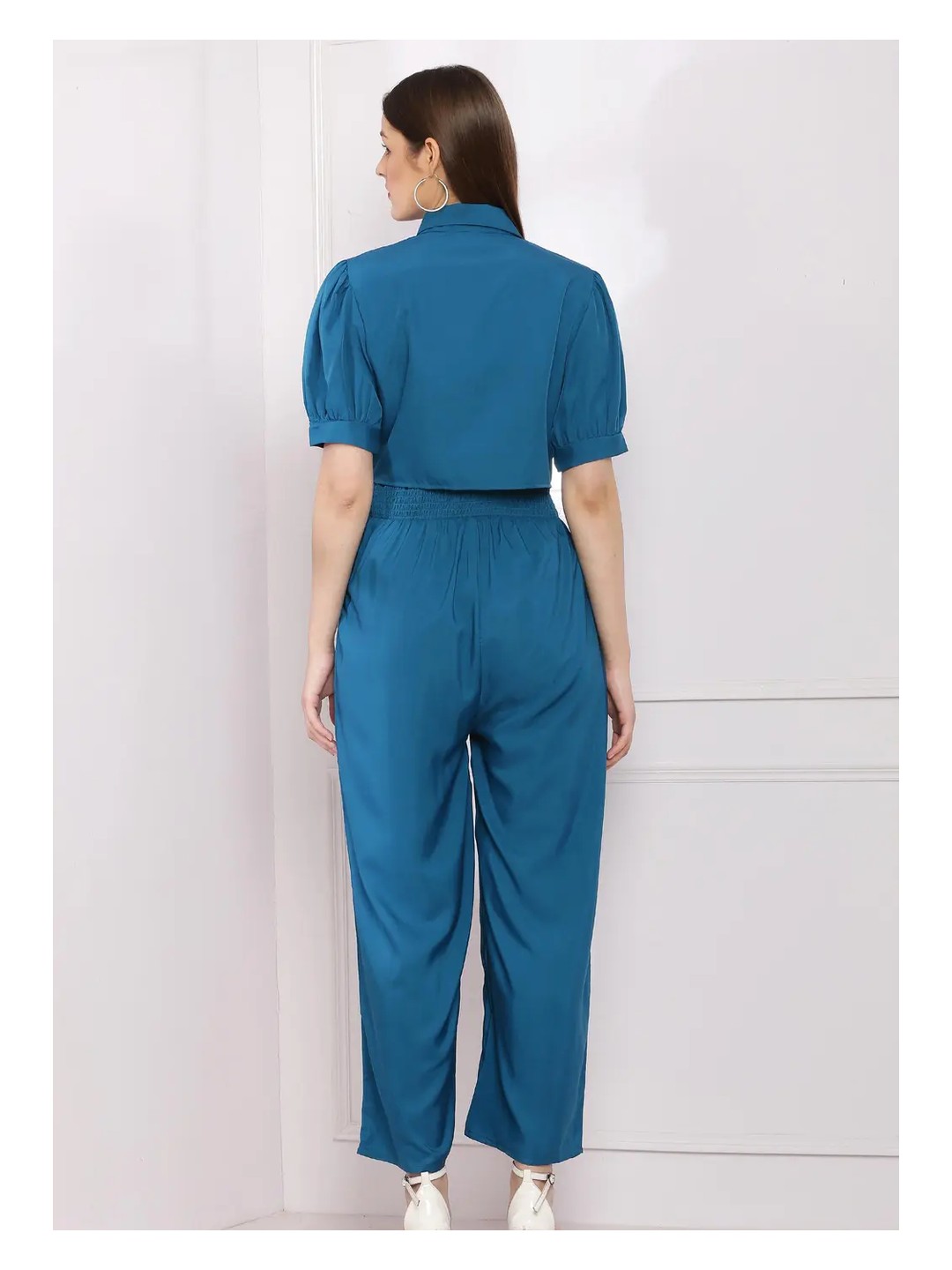 Product Name: Solid Shirt Tie-Up Jumpsuit for Women