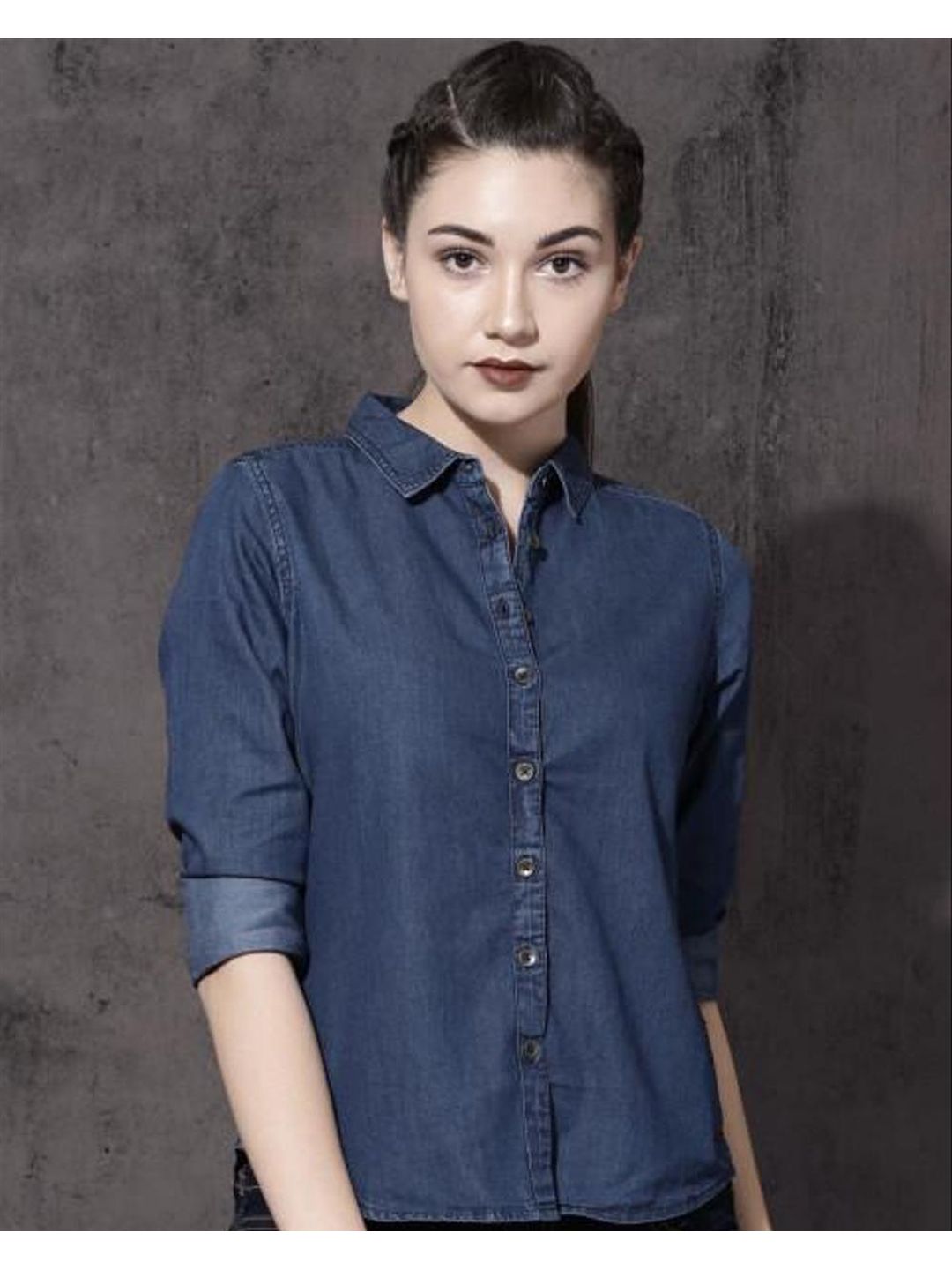Name : Solid Three-Quarter Sleeve Denim Shirt
