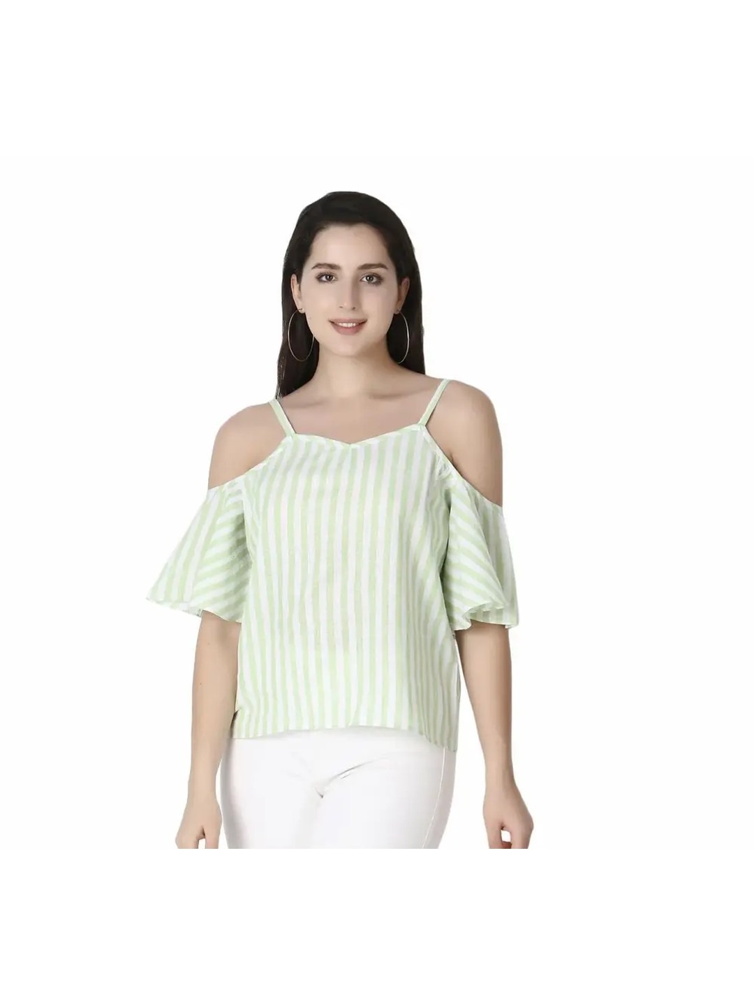 Striped Cold Shoulder Top for Women that has chic stripes, regular length and slim fit. This cotton striped cold shoulder top can be styled for a chic casual look.