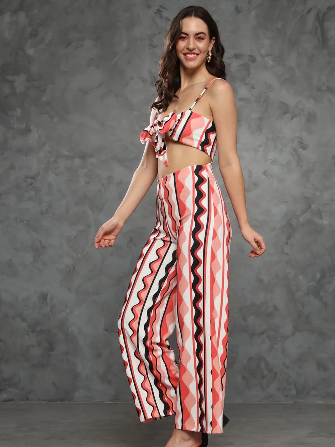 Name: Striped Front-Tie Top Bell Bottom Co-ord
