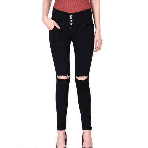 Name : Stylish 4 Button Knee Cut Women Jeans