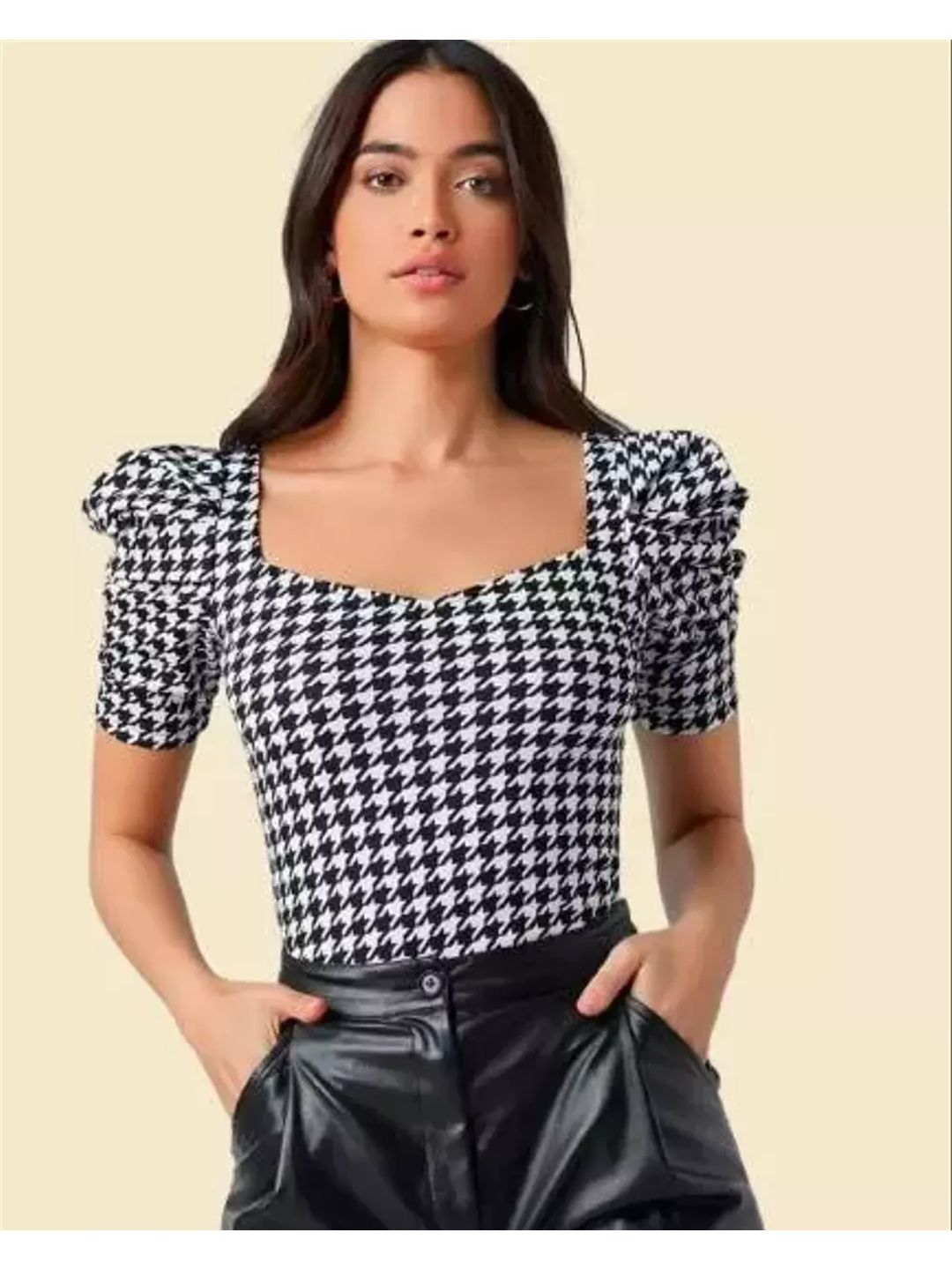 Product Type: Sweetheart Neck Puffed Sleeve Geometric Design Top for WomenFabric: PolyesterColour: Black & WhiteSleeve Length: Short SleevesPattern: PrintedSizes: XS (Bust Size: 32 in, Length Size: 23 in)S (Bust Size: 34 in, Length Size: 23 in)M (Bust Size: 36 in, Length Size: 23 in)L (Bust Size: 38 in, Length Size: 23 in)XL (Bust Size: 40 in, Length Size: 23 in)Country of Origin: India