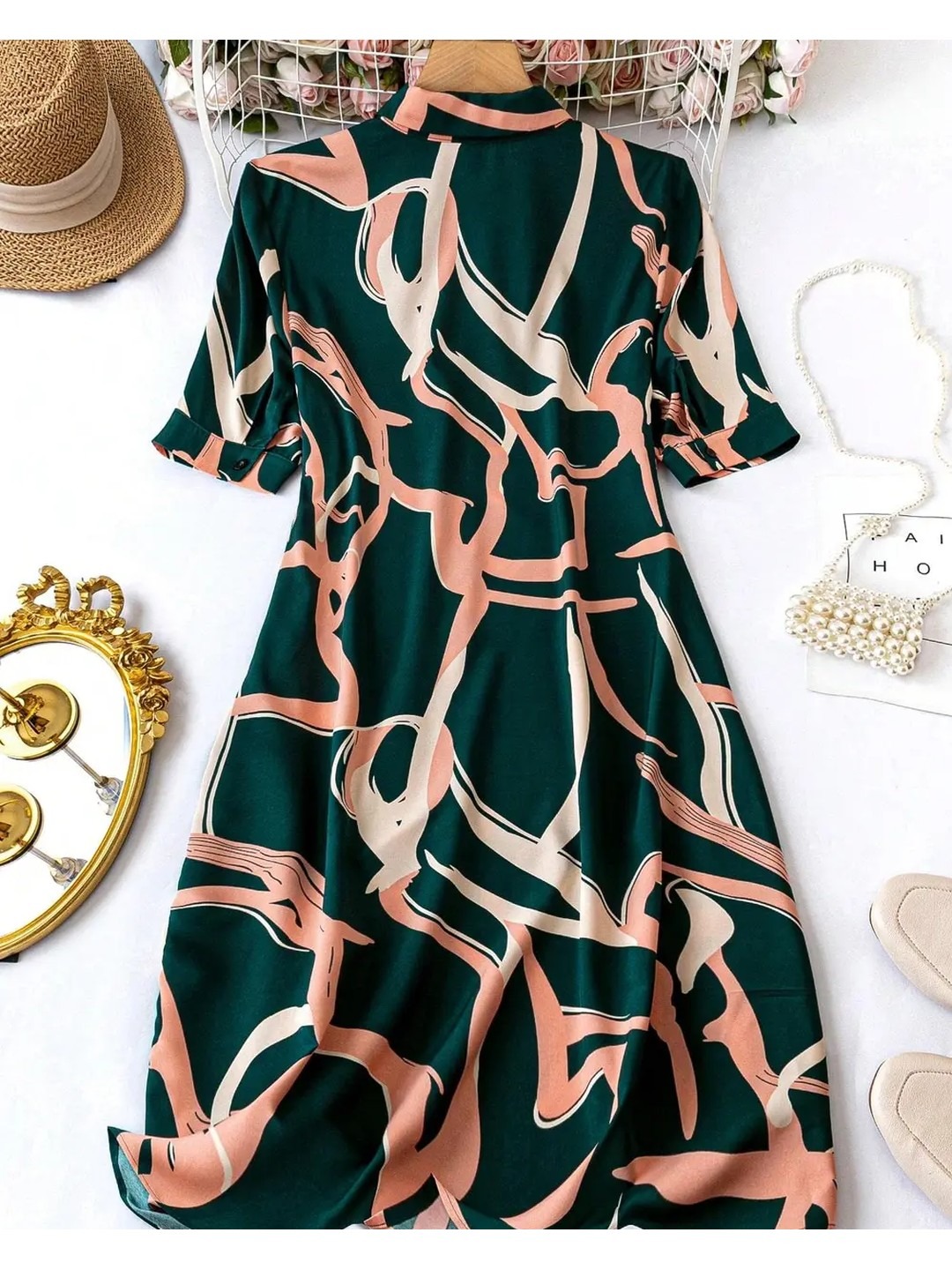 Product Name: Teal Printed Midi Shirt Dress for Women