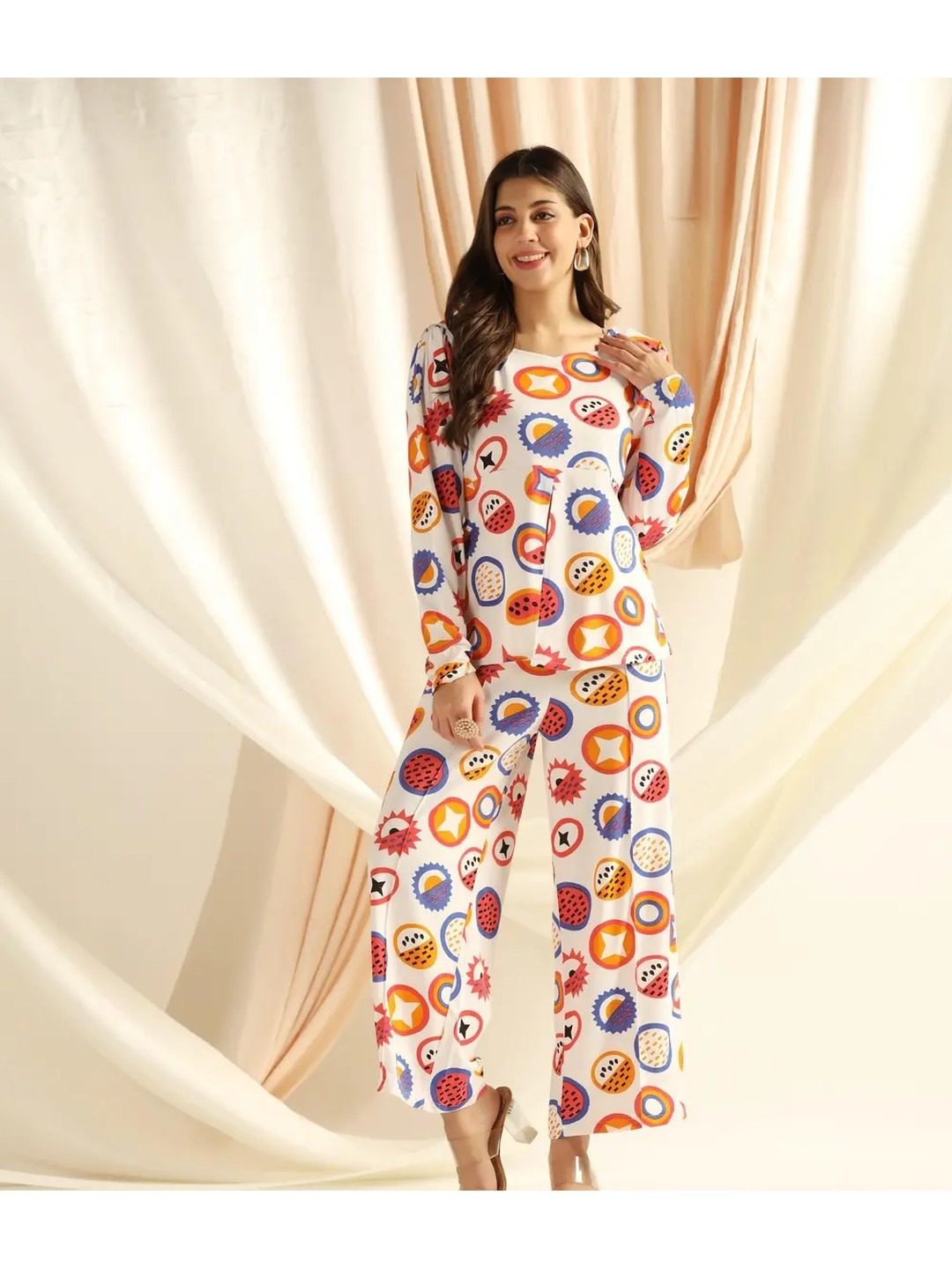Product Name: White Printed T-shirt Co-ord Set for Women