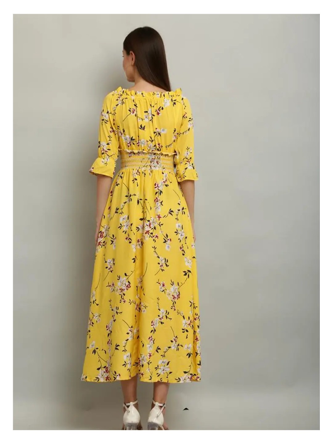 Product Name: Yellow Floral Off-Shoulder A-line Maxi Dress for Women